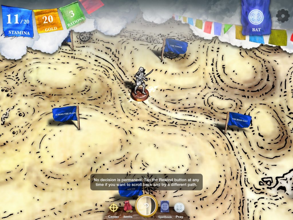 Presenting evidence of those choices is something Jon Ingold mentions as key in his GDC talk on innovation in interactive fiction, reflecting on inkle’s pursuit of engaging branching narrative. To underline the significance of the player’s choices in Sorcery, he says they used the map to both chart progress through the plot as well as to demonstrate visually where branches opened and closed by the selections made. That has a powerful impact on a player’s sense of agency, where they witness the world impacted in a meaningful way by their choices.