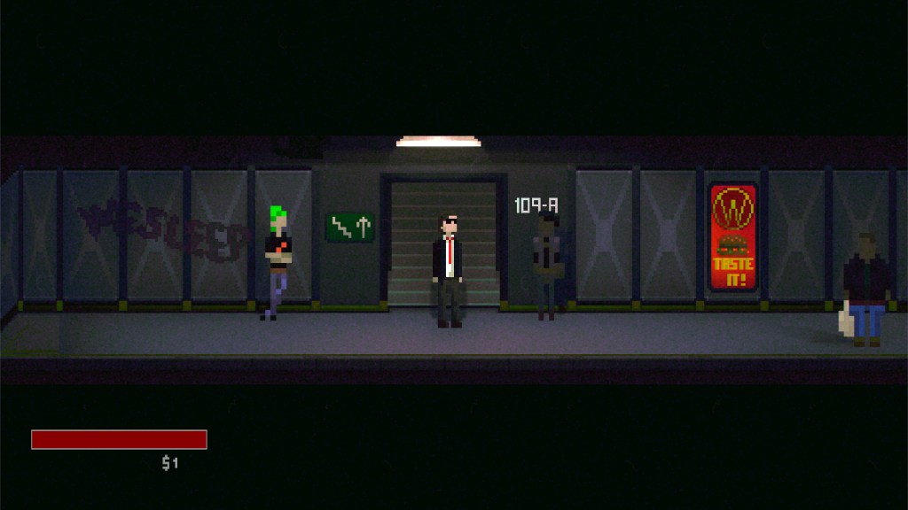 Along the way as an indie developer, I partnered up with a pixel artist to attempt a game loosely inspired by John Carpenter’s “They Live” – a game where a lone hero is the only aware person in a society infiltrated by alien overlords. The project never expanded beyond the most basic prototypes, but it was a great opportunity to try developing some new gameplay features! In the first video you can see an example of the crowd system I had developed, where members of the general populace would become alarmed based on player actions and react organically. Below that, you can see a video of some early combat gameplay, featuring hit VFX and animated blood decal placement on the level surfaces.